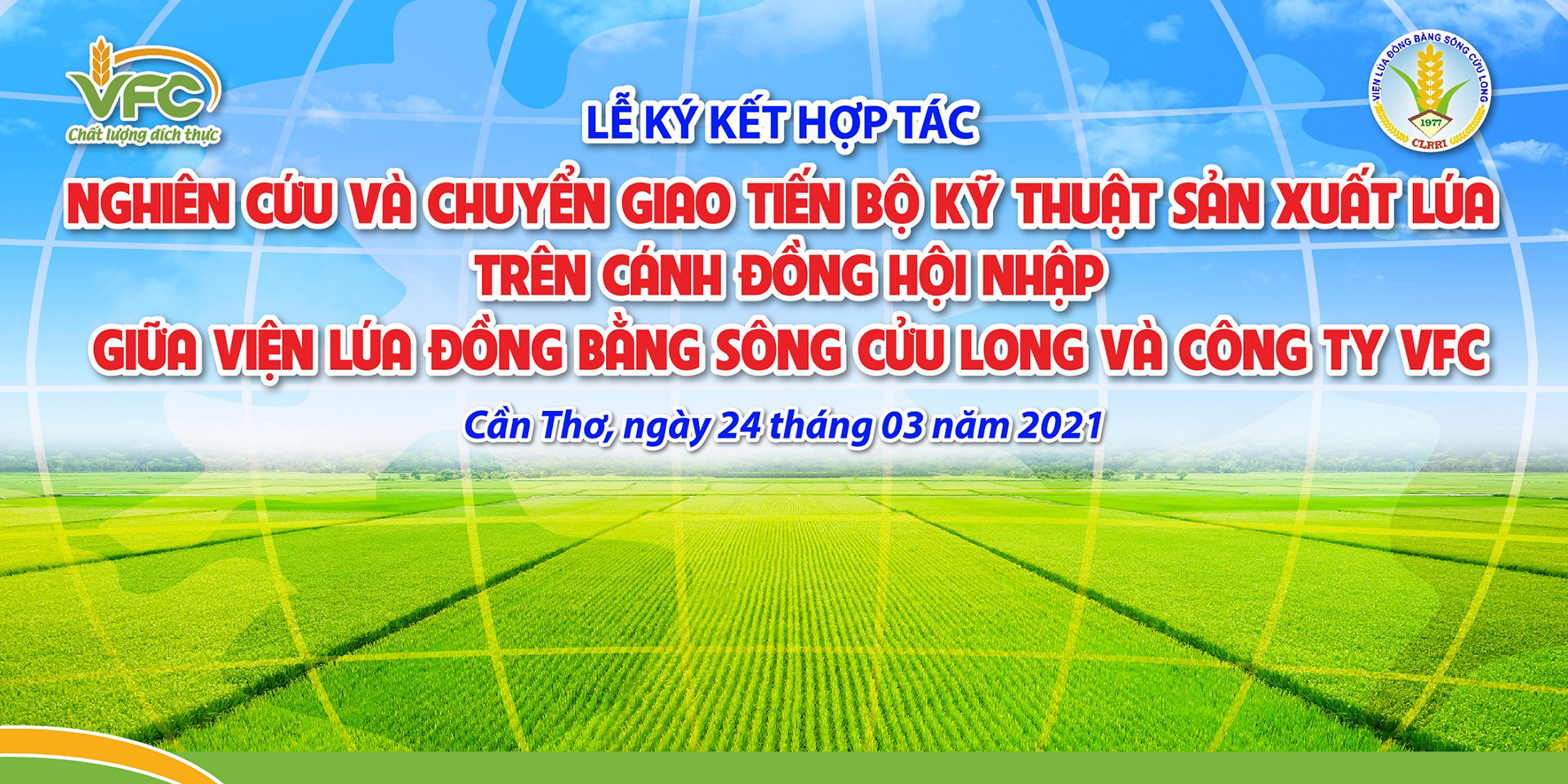 Lễ ký kết hợp tác giữa Viện lúa đồng bằng sông Cửu Long (CLRRI) và Công ty Cô phần Khử trùng Việt Nam (VFC)